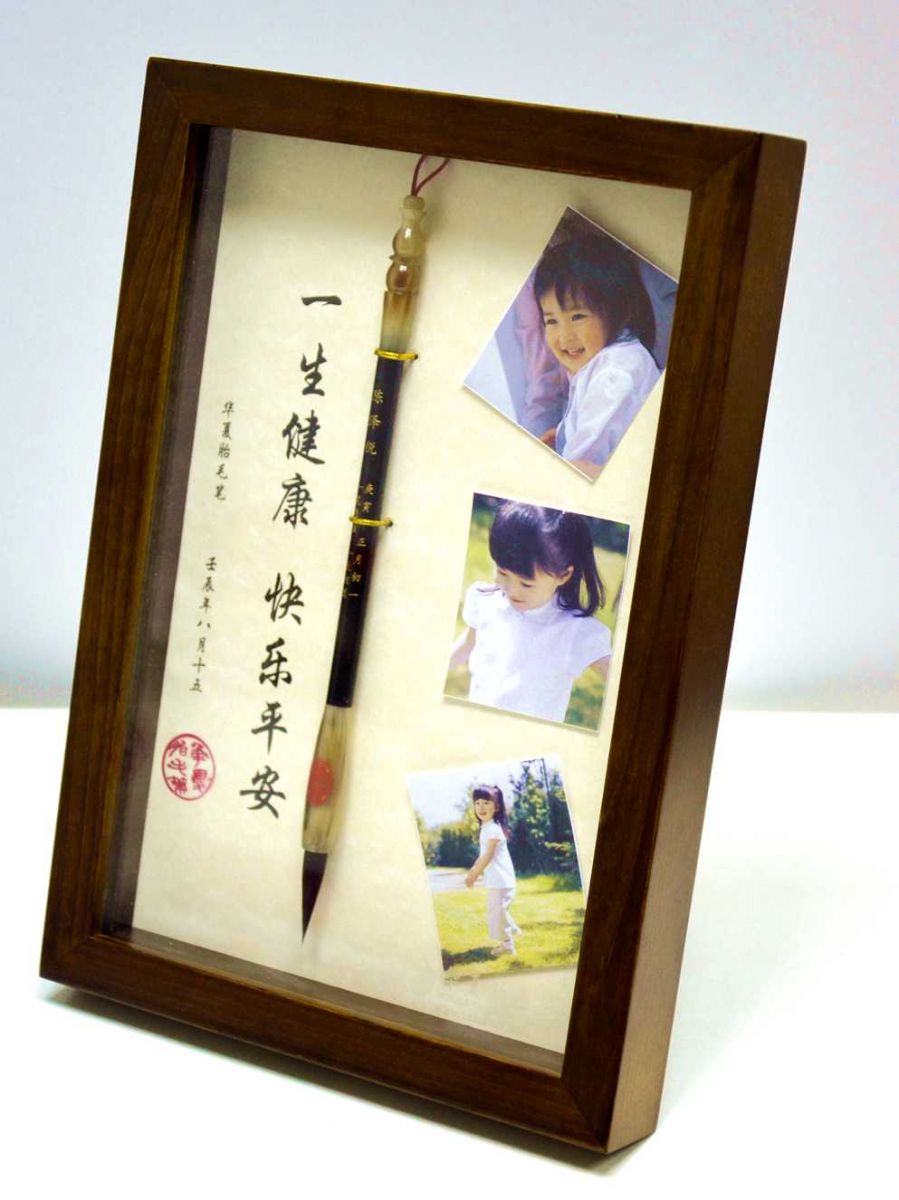 每一支胎毛笔都会在笔杆上雕刻上宝宝的名字、生日以及父母亲寄托给孩子的祝福语,使其成为世界上独一无二的纪念,蕴酿着父母对孩子最深最浓的祝福。